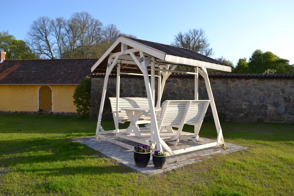 Trädgårdsgunga invid flygeln